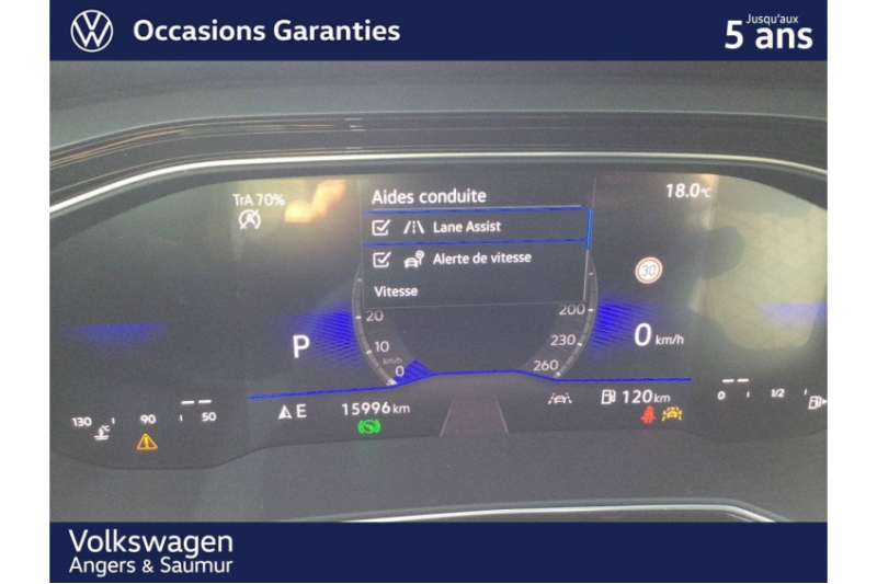 - Lane Assist: Assistant de maintien de trajectoire qui corrige, dans la limite du système, le mouvement du volant avant que le véhicule dépasse involontairement la bande de roulement. Système actif à partir de 65 km/h